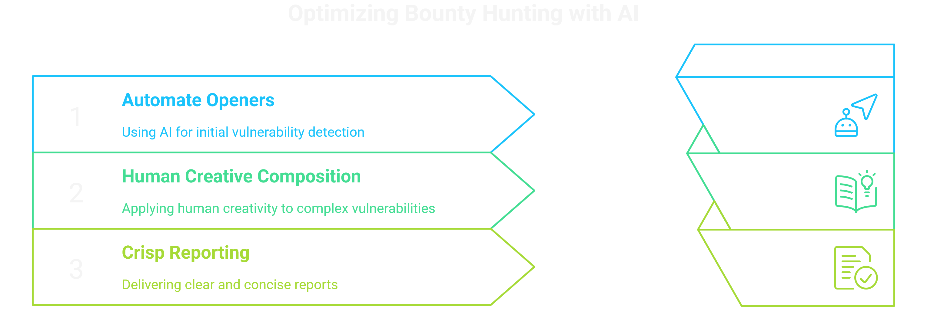Start by automating first-pass recon on every in-scope asset each cycle so easy signals are never missed. Next, combine small, common mistakes into payout-grade attack chains—for example, a weak preflight check plus the wrong JWT audience setting and a verbose error can lead to an auth bypass.