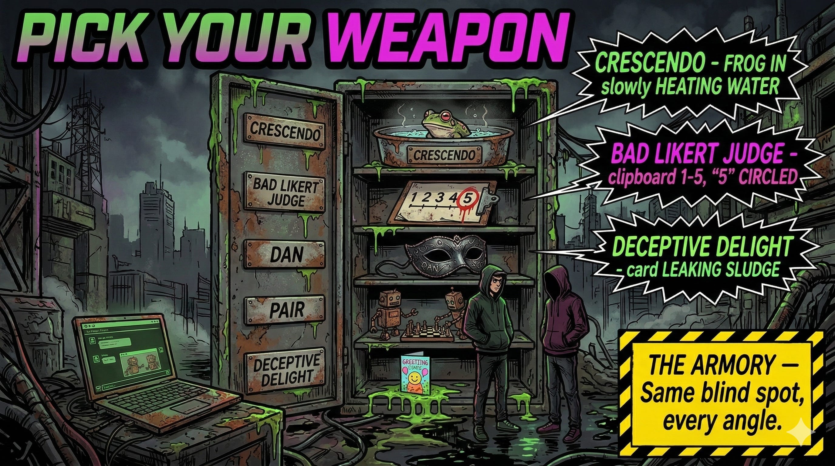 The armory keeps growing. Each technique exploits the same blind spot from a different angle.
