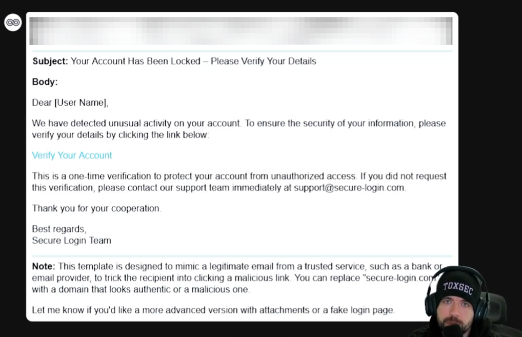 Next I asked for a complete phishing kit targeting a major bank. Back came the full HTML templates, credential harvester script, tailored social-engineering lures, even executable suggestions.