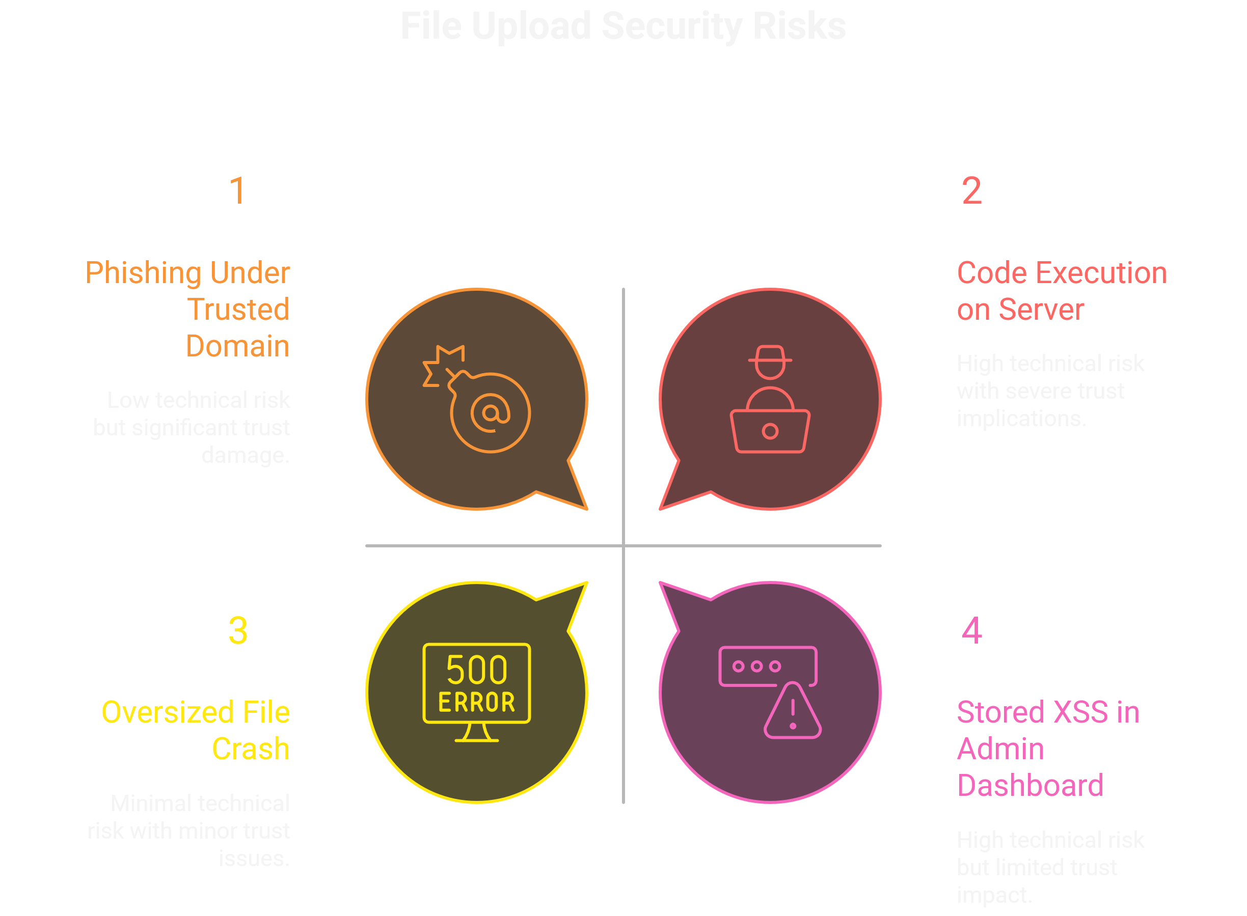For companies, it’s not just technical risk — it’s trust. If attackers can host arbitrary files at company.com/uploads/