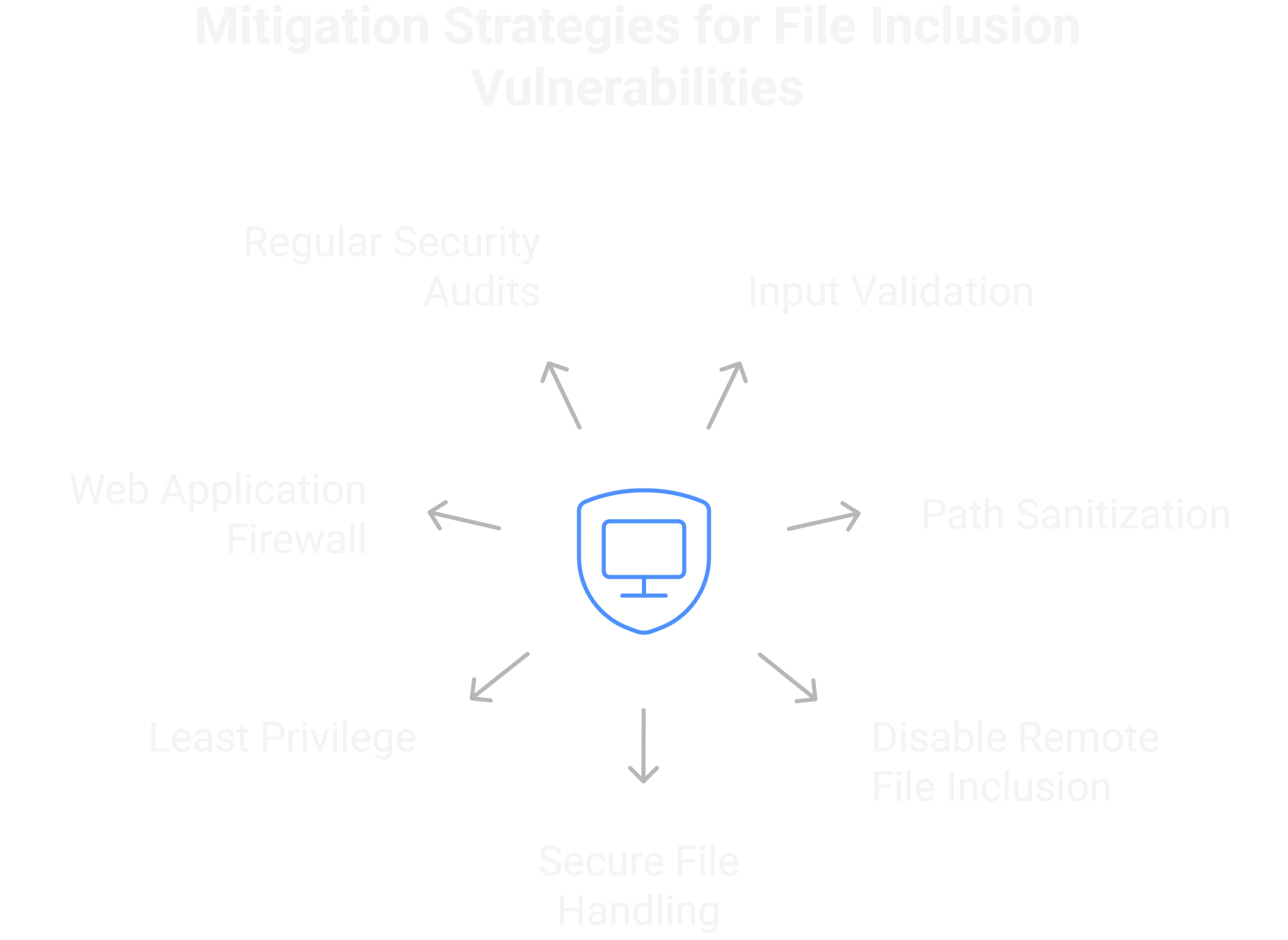 Preventing file inclusion vulnerabilities requires careful coding practices and robust security measures. Here are some mitigation strategies: