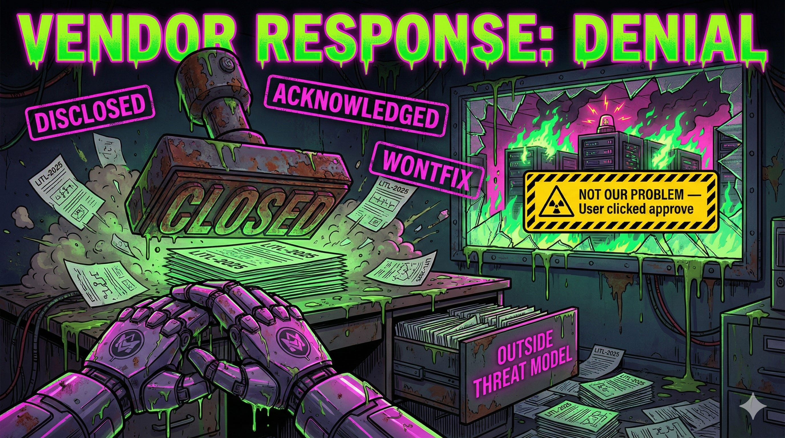 Anthropic’s response was that LITL falls “outside their current threat model.” Microsoft acknowledged the Copilot Chat vulnerability, then closed the report without implementing fixes.