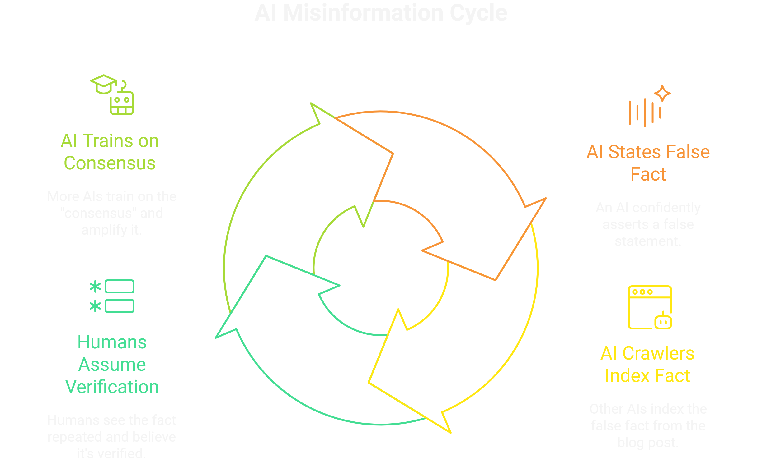 Through pure repetition, an AI hallucination becomes accepted reality. There’s no malice here. Just a machine doing exactly what it was designed to do, with catastrophic side effects.