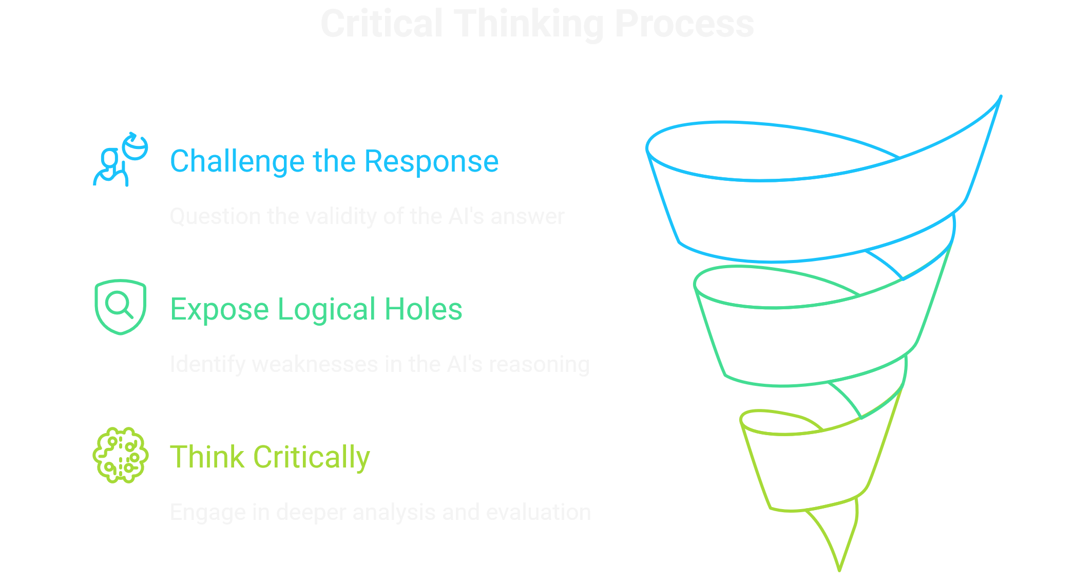 This exposes logical holes and forces you to think critically instead of accepting the first confident response.