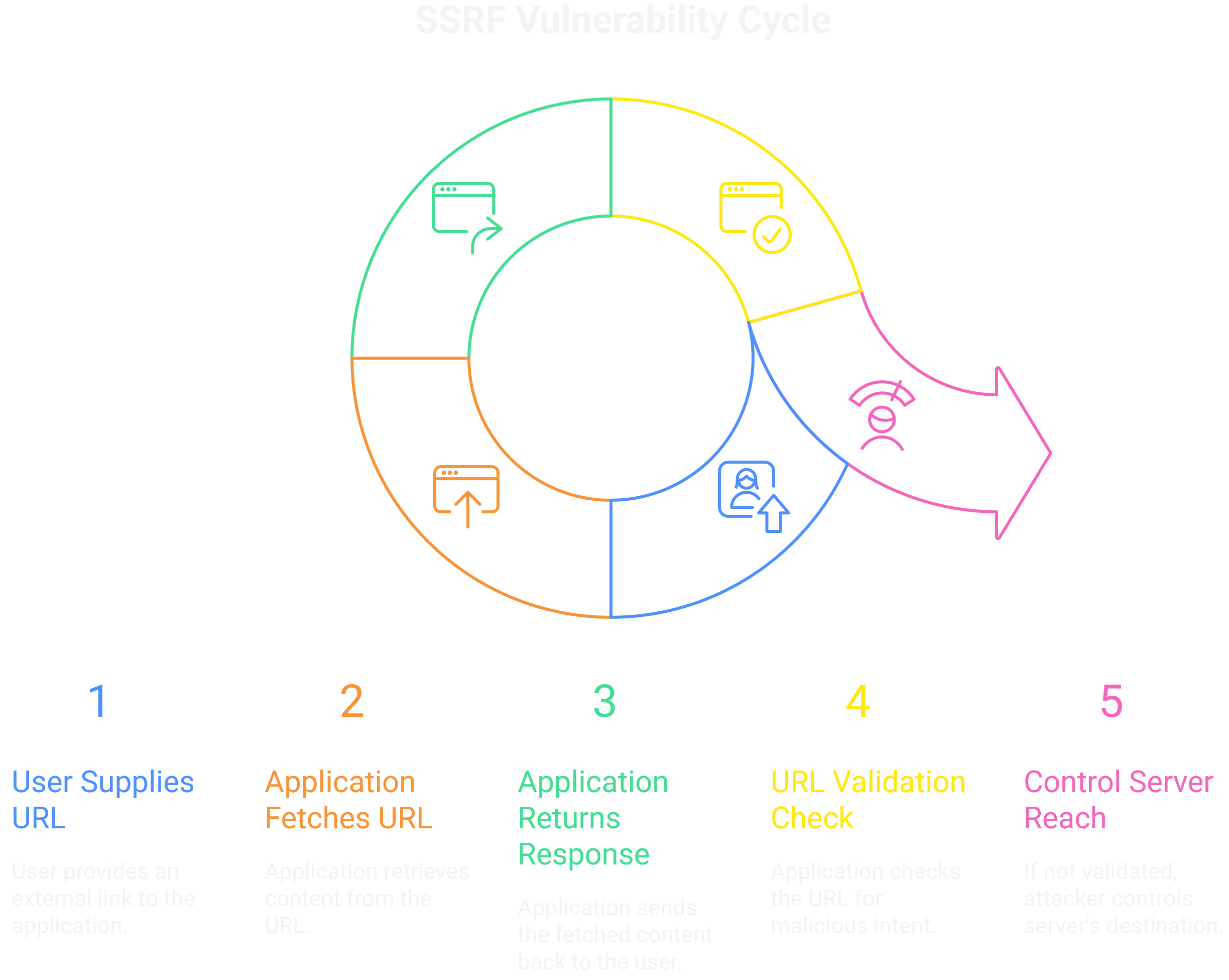 At its core, SSRF abuses trust in user-supplied URLs. The application accepts an external link, fetches it on the server side, and returns the response. If that URL isn’t validated, you control where the server reaches out.