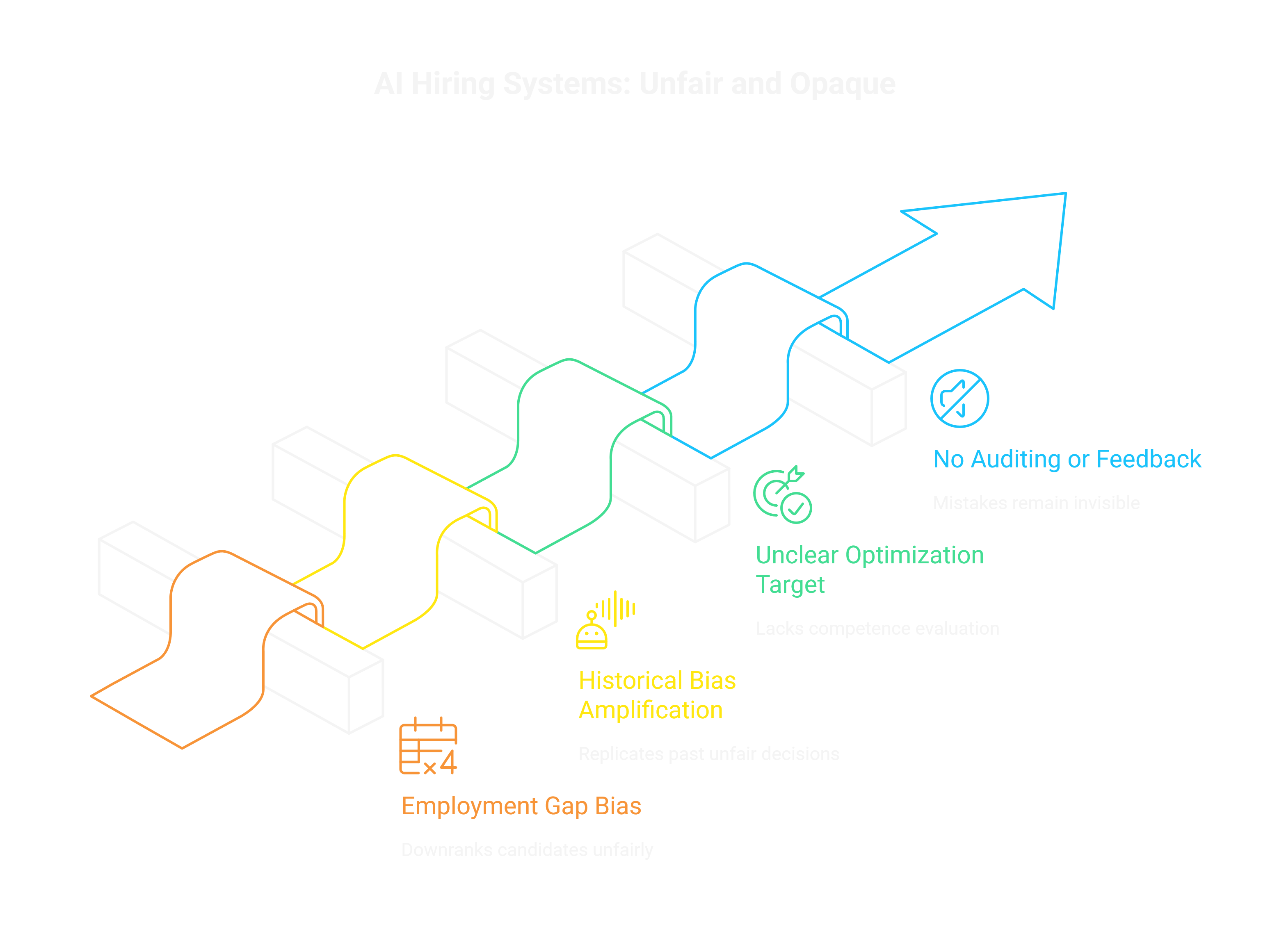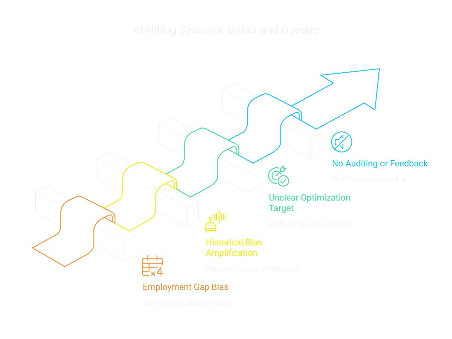 Some systems downrank candidates with employment gaps without understanding why. Parental leave? Career change? Medical issue? Doesn’t matter. Gap equals bad. The algorithm isn’t evaluating qualifications, it’s enforcing arbitrary patterns from historical data.