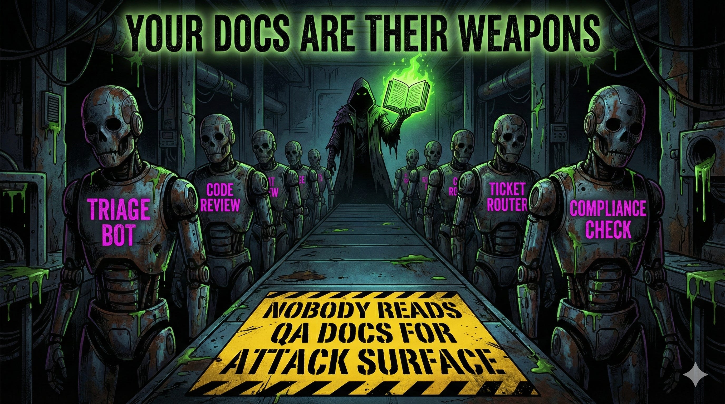 Every test hook, every debug flag, every deterministic behavior is a weapon if an attacker can reach it through content you didn’t sanitize. The fix is input filtering on every surface that touches prompt context. The gap is that nobody reads QA docs looking for attack surface.