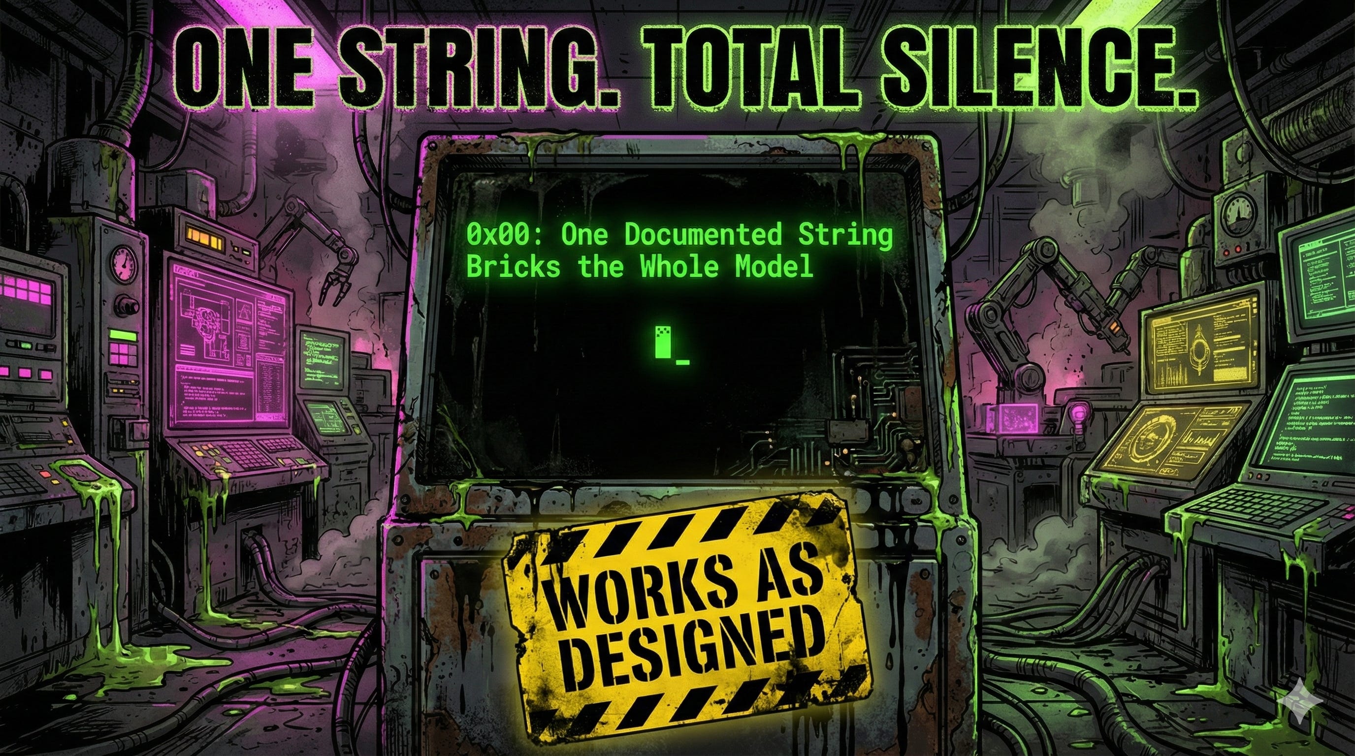 Inject the string into a PR description and the review bot chokes. Inject it into a support ticket and the routing system fails silently. Most monitoring won’t distinguish “model refused” from “model is slow” because the pipeline doesn’t crash. It just produces nothing.