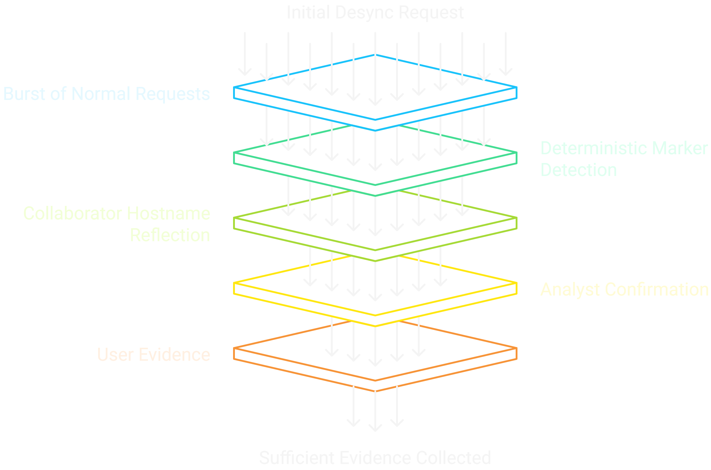 Bounded PoC. A desync that targets a nonexistent path + a small request burst = reliable signal with minimal blast radius.