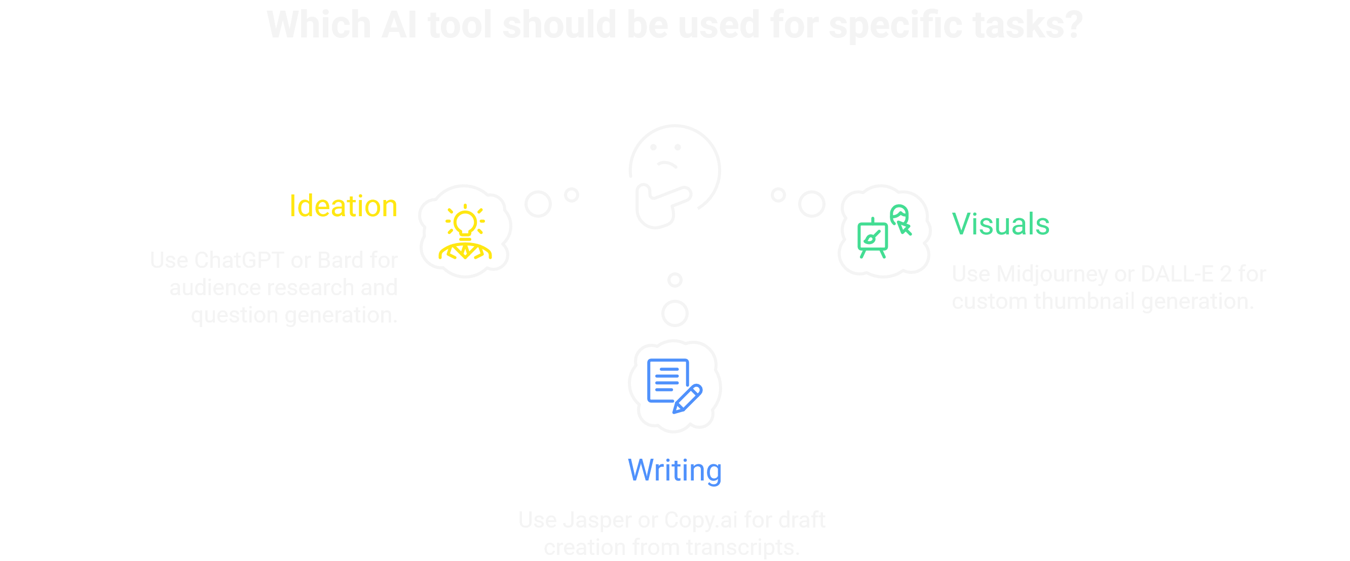 For Visuals: Need a custom thumbnail? AI image generators like Midjourney or DALL-E 2 create stunning visuals in seconds. Tools like Descript let you edit video just by editing the text.